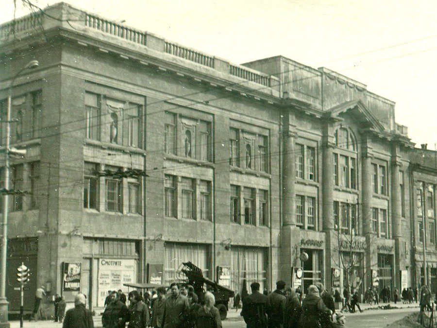 Дом Экономического общества и гарнизонного собрания офицеров ОВО. Архитекторы Т. А. Янчис, С. И. Рудницкий, В. И. Кундерт (1907-1911 гг.). В 1920-х годах в нем создан Дом Красной армии и флота. Существует версия, что после захвата города в здании разместились оккупационные войска и перед своим бегством разорили и подожгли этот дворец культуры. По другой версии в здании разместились фашисты и в январе 1942 года подпольщики его взорвали. Перекрытия не выстояли, но внешние стены остались целыми. В 1958-1962 годах архитекторами П. В. Глазуновой и Л. А. Краковской было проведено восстановление и реконструкция здания для многозального кинотеатра «Одесса».