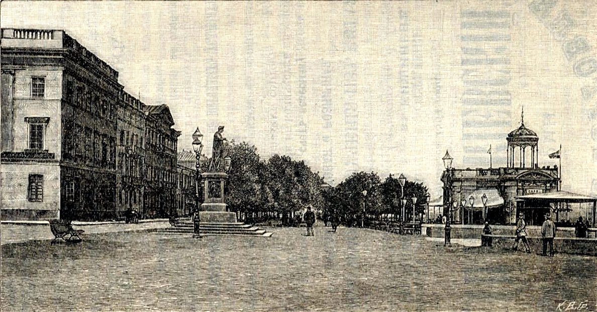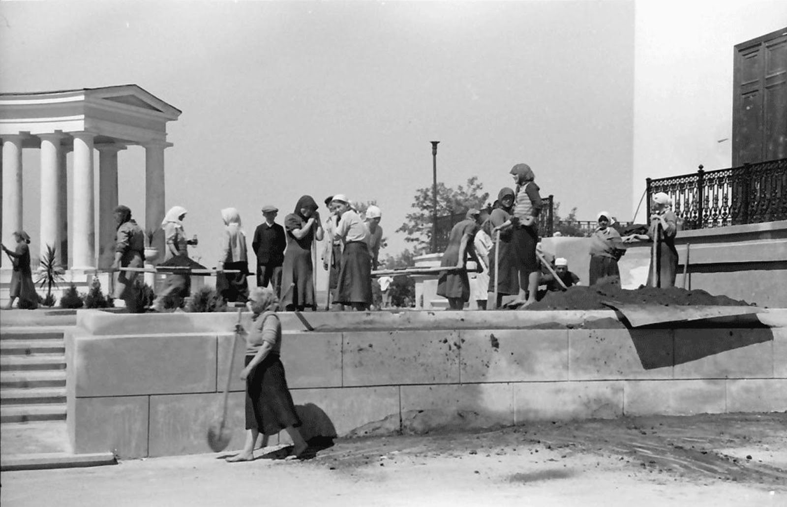 Фото 1943 года. Виден цоколь гостевого крыла дворца городской усадьбы Воронцовых (он же в народе несправедливо именуется «Орловским корпусом»). Этот объем с подземным пространством (частично засыпанным) и пристенной подземной галереей сохранился до наших дней под слоями «благоустройства» периода румынской оккупации Одессы, советского и постсоветского периодов.